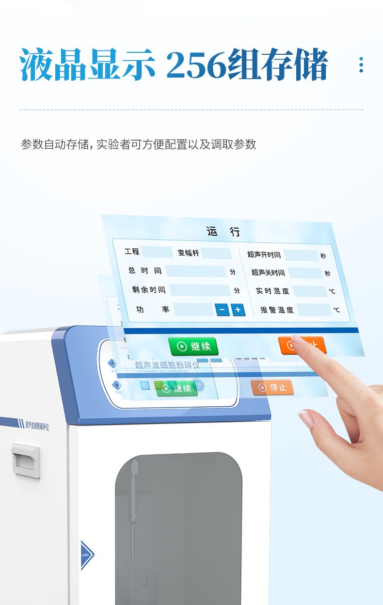 自研自產(chǎn)的超聲波細(xì)胞破碎儀,功能齊全、外觀新穎、性能可靠。儀器采用大屏液晶顯示;中央微機(jī)集中控制,超聲輸出、間隙時間、超聲功率,樣品溫度監(jiān)測顯示,頻率自動跟蹤,故障自動報警等功能。適用于生物化學(xué)、微生物學(xué)、藥物化學(xué)、表面化學(xué)、物理學(xué)、動物學(xué)、農(nóng)學(xué)、醫(yī)學(xué)、制藥等領(lǐng)域的教學(xué)、科研及生產(chǎn)。