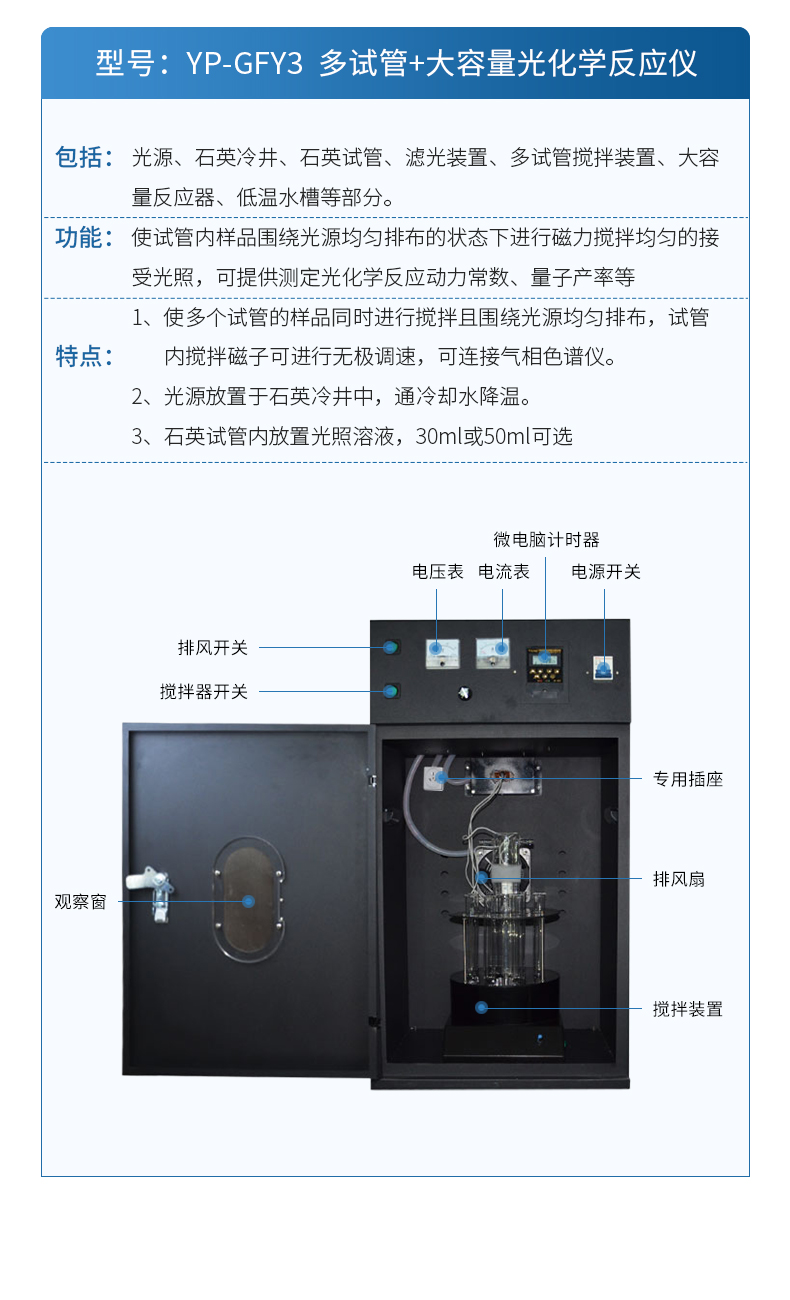 1.多試管光化學(xué)反應(yīng)儀智能微電腦控制,可觀(guān)察電流和電壓實(shí)時(shí)變化