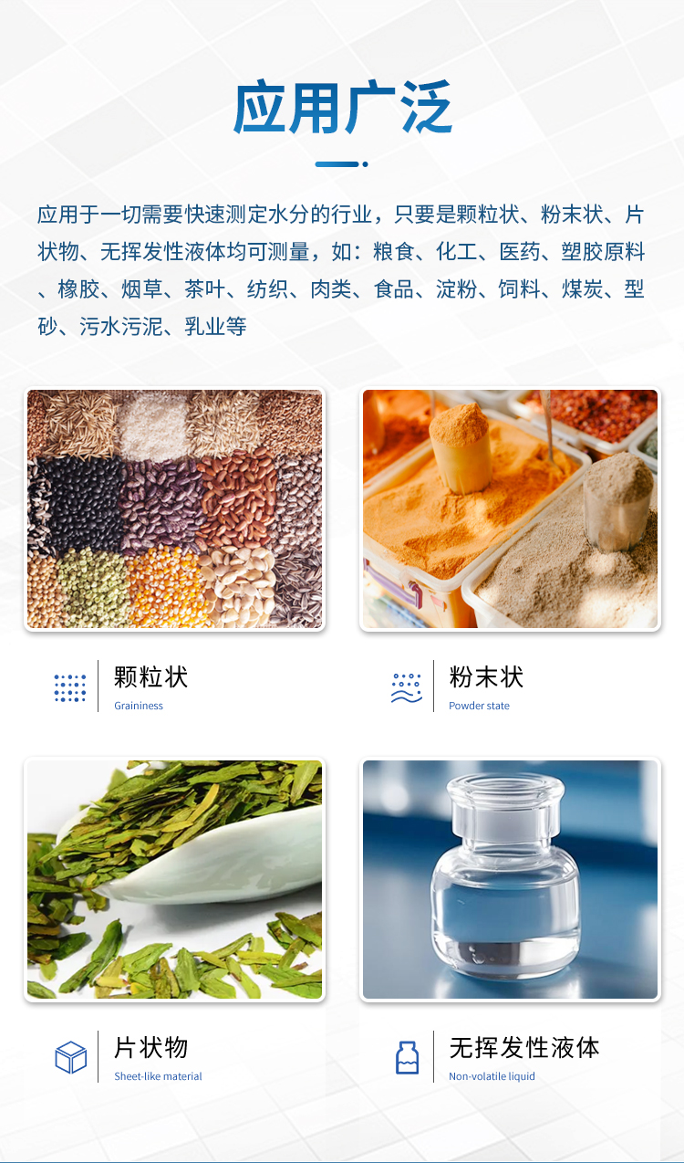7、用途非常廣泛、幾乎適用各行業(yè)的水分測定;