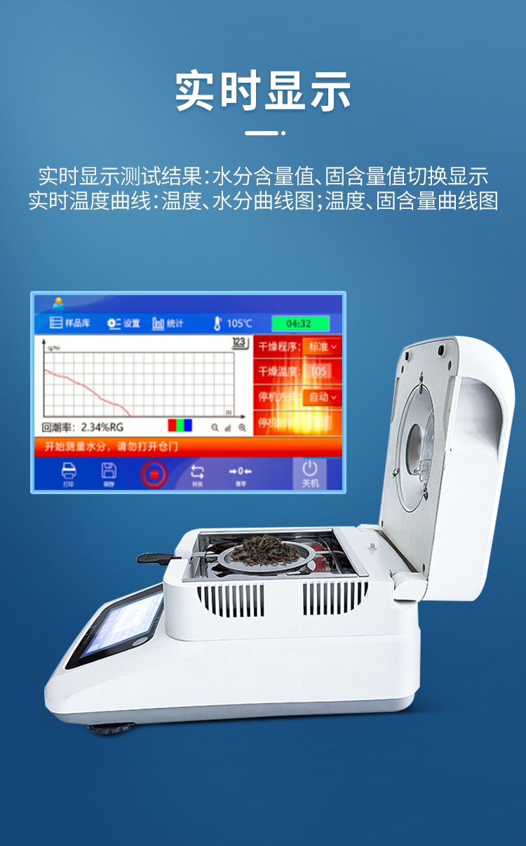 該系列快速水分測定儀應(yīng)用了國際烘箱干燥法原理,測定結(jié)果與烘箱法水分測定具有良好的一致性,工作效率卻遠(yuǎn)遠(yuǎn)高于烘箱法水分測定,一般樣品只需要幾分鐘即可測量完畢,因此受到廣大用戶的青睞與好評。