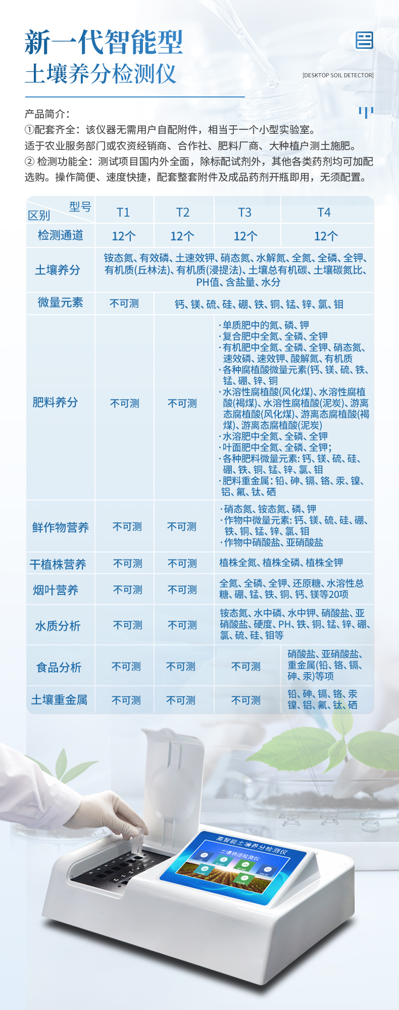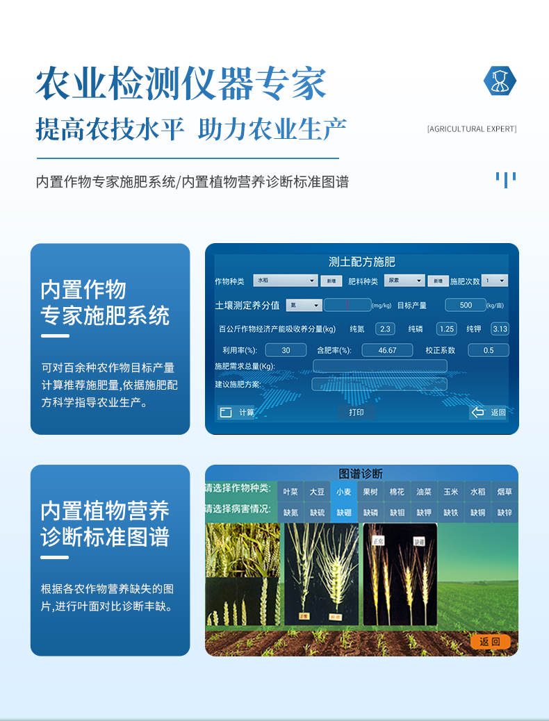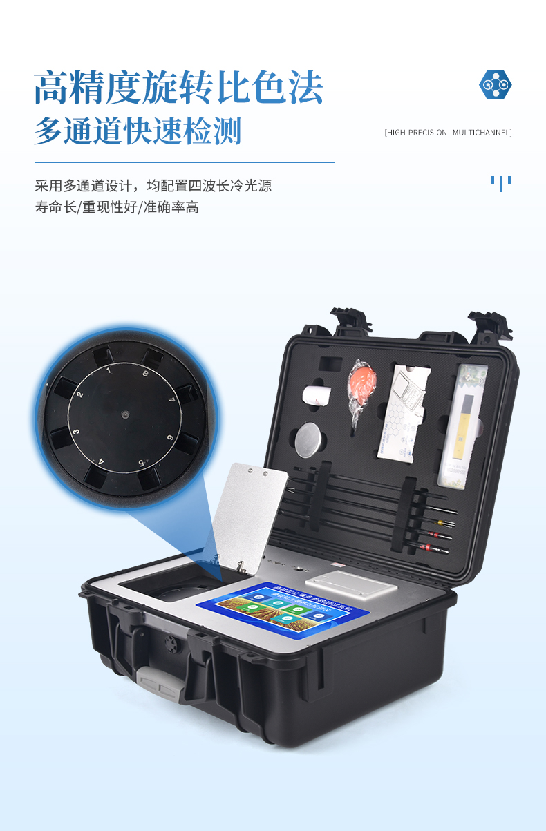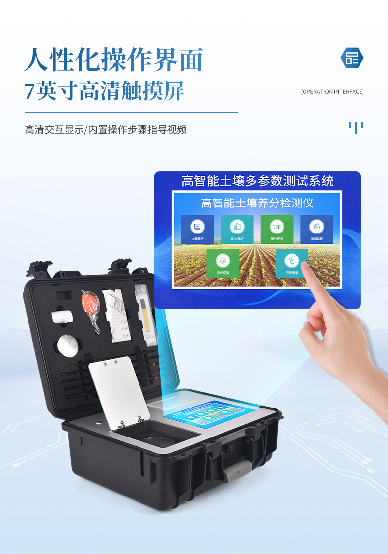配套齊全:該儀器集藥、器、儀為一體,攜帶方便,相當(dāng)于一個(gè)小型移動(dòng)實(shí)驗(yàn)室,無(wú)需用戶自配附件,亦可靈活野外流動(dòng)測(cè)試。適于農(nóng)業(yè)服務(wù)部門或農(nóng)資經(jīng)銷商、高教院校、科研院所、合作社、肥料廠商、大種植戶測(cè)土施肥和鑒別肥料真假及環(huán)保檢測(cè)應(yīng)用。