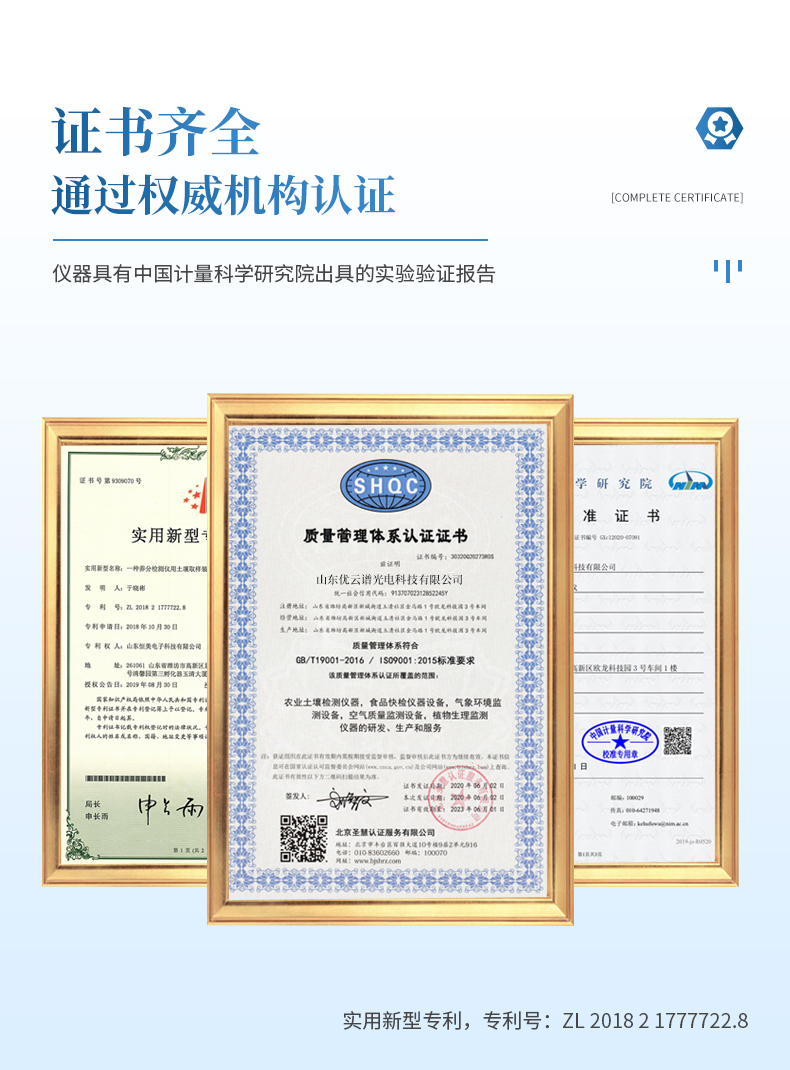 5、檢測(cè)過(guò)程中內(nèi)置校準(zhǔn)功能,智能恒流穩(wěn)壓,光強(qiáng)自動(dòng)校準(zhǔn),確保檢測(cè)準(zhǔn)確度,取得中國(guó)計(jì)量科學(xué)研究院的《校準(zhǔn)證書(shū)》。