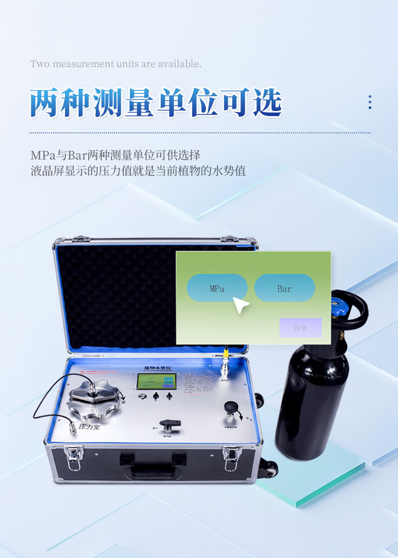 植物水勢測定儀,是用于測定植物水分狀況和它的組成成分及壓去木質(zhì)部位導(dǎo)管汁液提供成分分析用的一種分析儀器??梢岳么藘x器研究植物的水分關(guān)系和植物與環(huán)境的關(guān)系。植物水勢測定儀適用于植物生理學(xué)、生態(tài)學(xué)、農(nóng)學(xué)、林學(xué)及牧草等的研究。據(jù)此指導(dǎo)作物及林草的合理用水和抗旱育種等工作,是從事農(nóng)林教學(xué)和科研工作的重要儀器。該儀器操作簡便,檢測快速,同時適用于室內(nèi)和室外及野外測量。