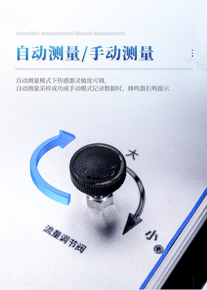 2. 支持自動測量與手動測量兩種模式,一鍵切換,自動測量模式下傳感器靈敏度可調(diào)。