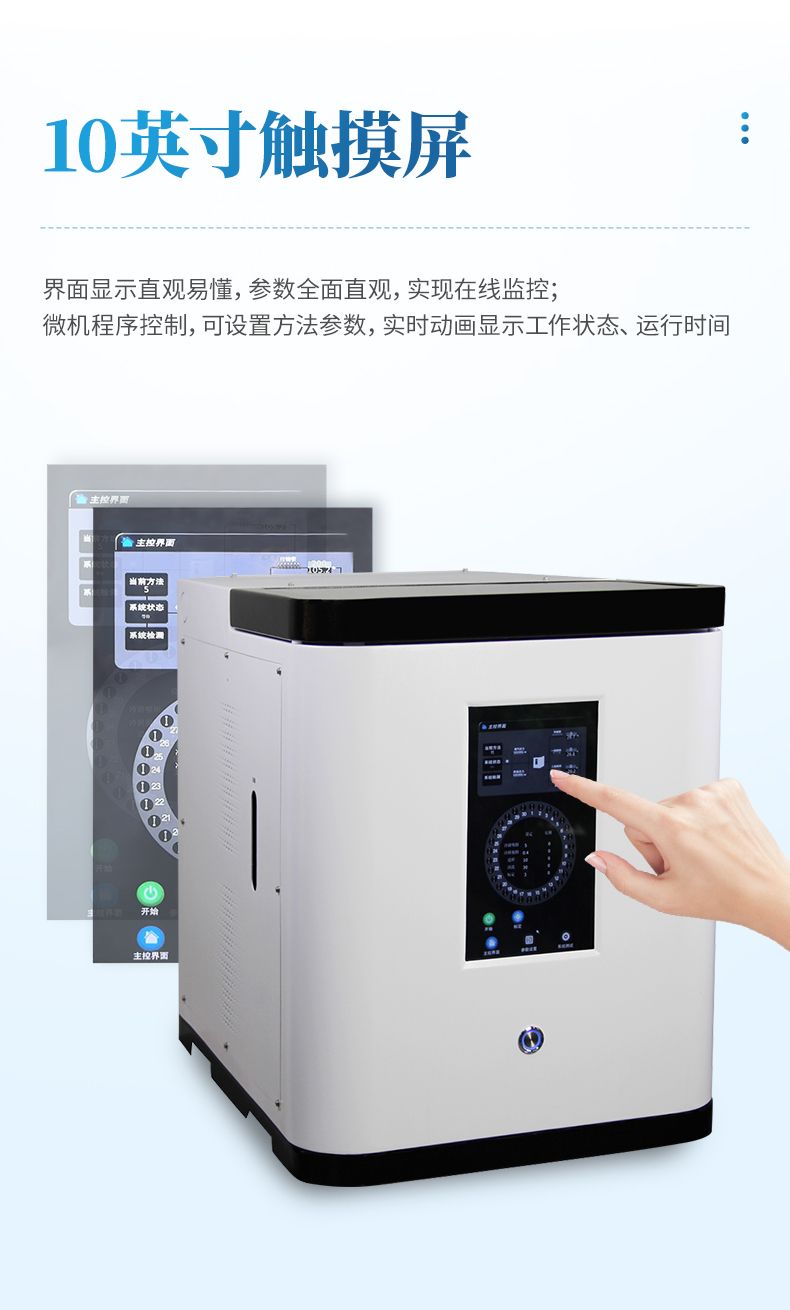 5、微機(jī)程序控制功能,可進(jìn)行方法參數(shù)設(shè)置,實(shí)時(shí)動(dòng)畫顯示工作狀態(tài)、運(yùn)行時(shí)間;