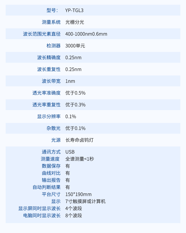 | 透光率準(zhǔn)確度 | 優(yōu)于0.3% |