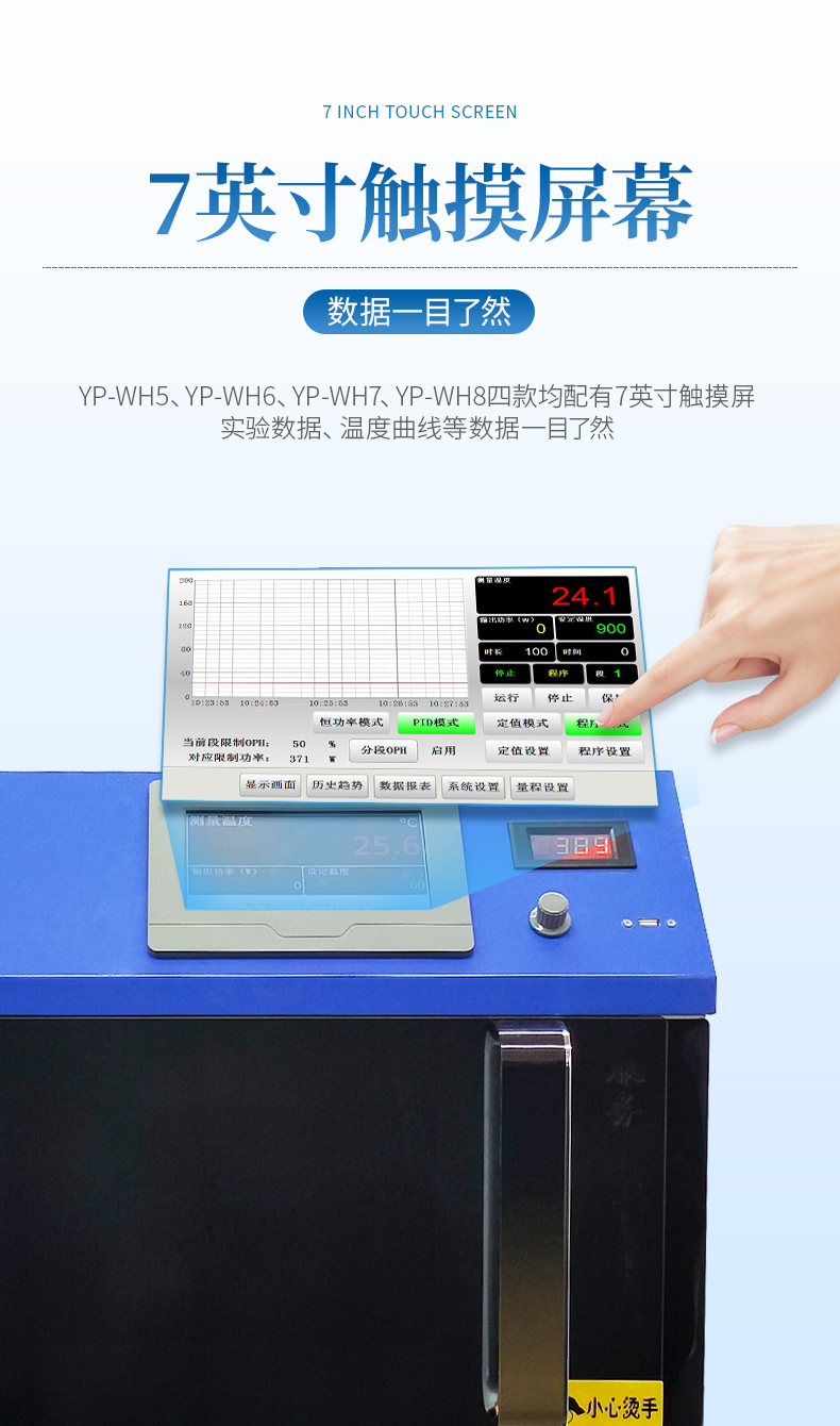 采用最新變頻技術(shù),通過變頻器將50Hz工頻轉(zhuǎn)換為10000~30000Hz可變頻率,取代了傳統(tǒng)微波反應器使用的高壓變壓器,完美解決了傳統(tǒng)微波反應器精確控溫時,高壓變壓器受尖峰脈沖的沖擊,造成變壓器頻繁損壞的技術(shù)缺陷。MCU根據(jù)Pt100傳感器實時檢測到的溫度變化數(shù)據(jù)、反應物質(zhì)極性、熱容變化、反應時間等數(shù)學模型的變化條件,自適應PID調(diào)節(jié),自動變頻控制微波輸出功率,從而精確控溫。