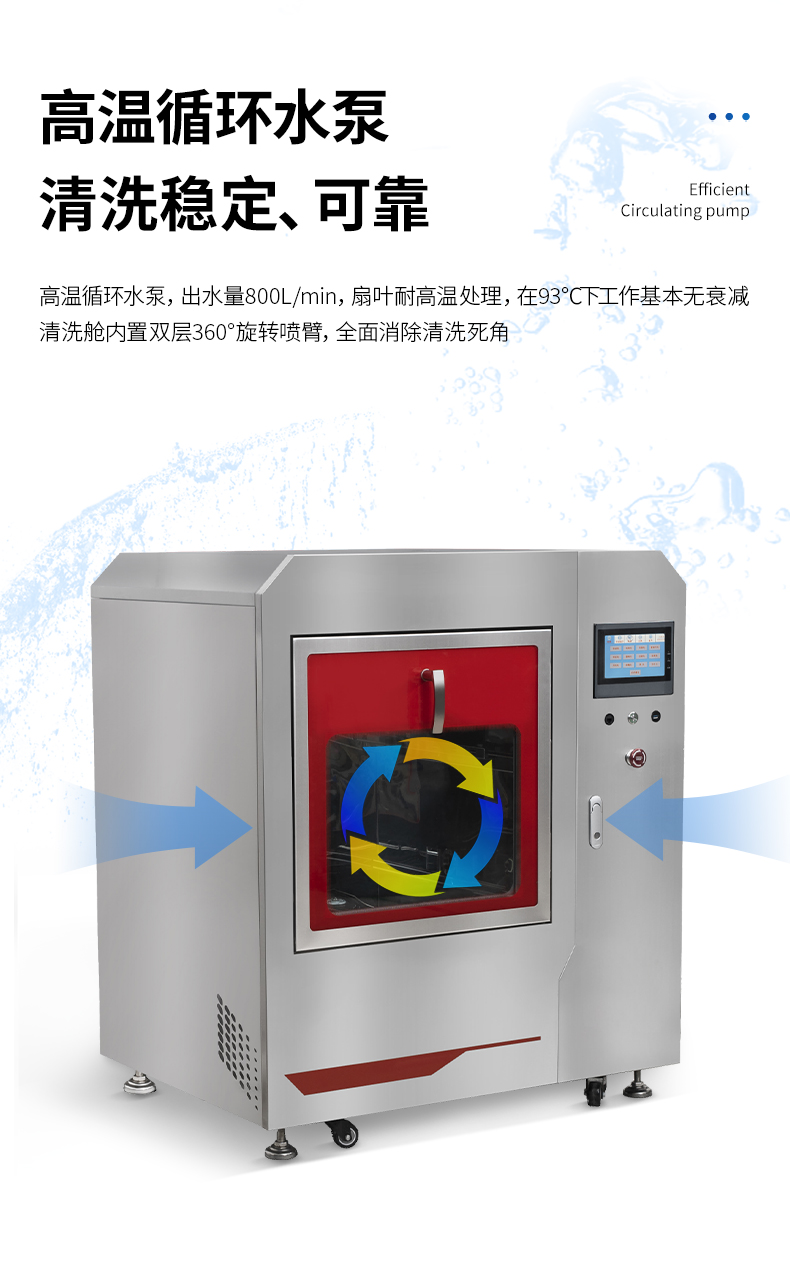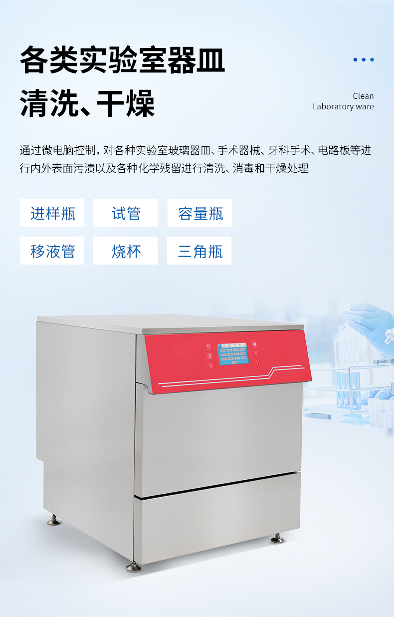 1.1全自動(dòng)清洗設(shè)備,利用高溫、高壓水持續(xù)噴淋器皿內(nèi)外表面,結(jié)合清洗液的作用,清潔器皿內(nèi)外污物,進(jìn)水、清洗、排水、烘干全自動(dòng)完成,無需人工干預(yù);