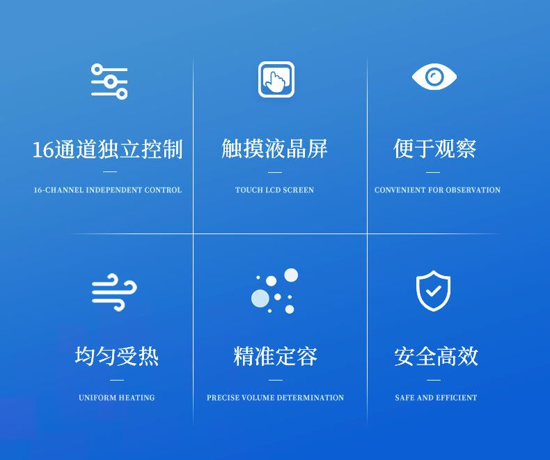 采用比熱容大的水作為導(dǎo)熱媒介,每個(gè)孔位的溫度一致,使樣品在濃縮過(guò)程保持高度平行性。